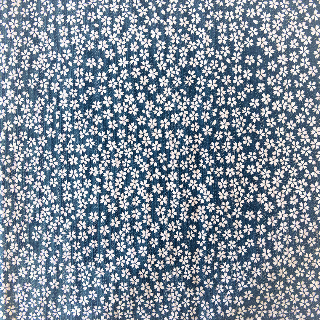 • On one side are white sakura cherry blossom, vivid against the navy background. Turn the furoshiki over, and the other side features an asanoha (hemp leaf) pattern in white over a red background. Hemp leaves were grown in Japan for thousands of years to make textiles and is a motif believed to bring health and good fortune.