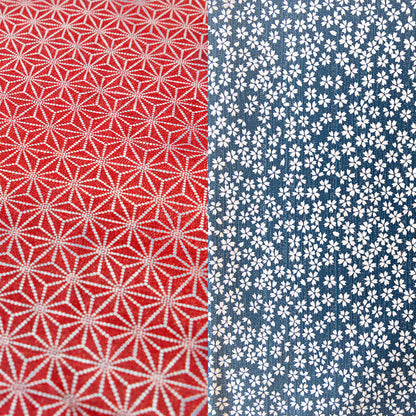 The Double Sided Furoshiki Wrapping Cloth 50cm | Asanoha Sakura Navy & Red features two-different traditional Japanese designs.