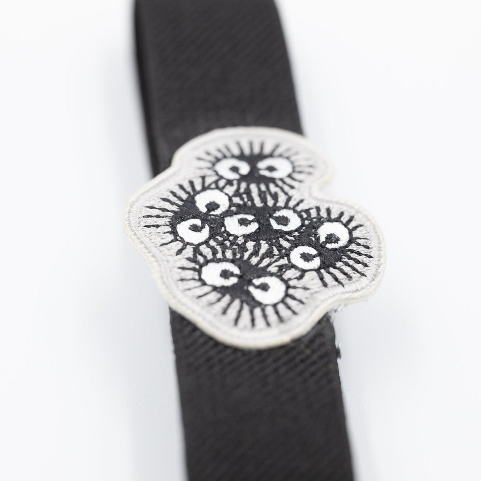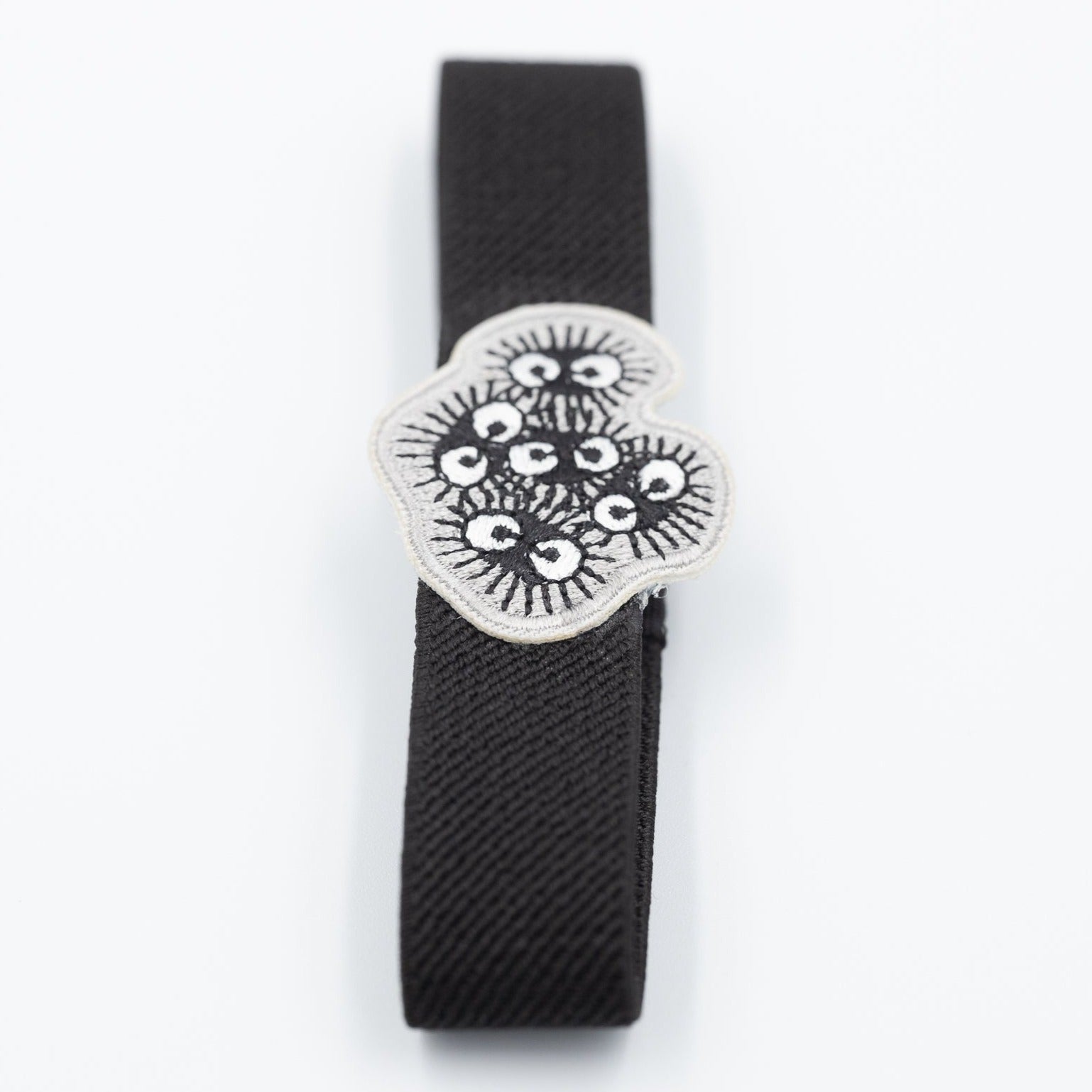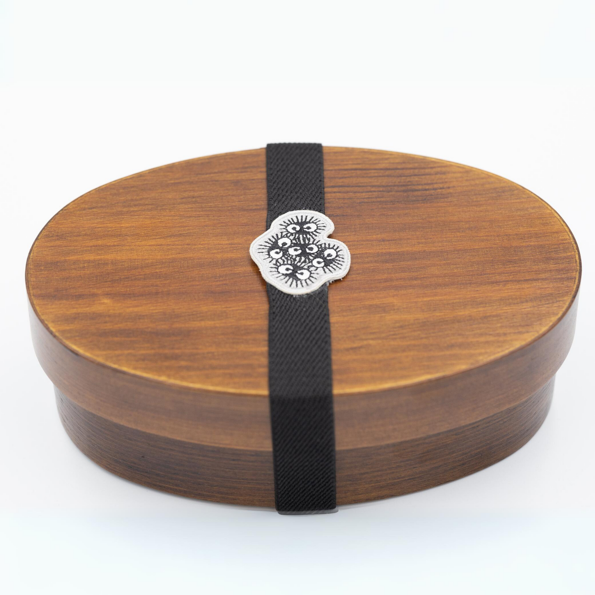 Adorable banda para el almuerzo con un detalle bordado de los adorables duendes de hollín "Makkuro Kurosuke" de Mi Vecino Totoro . Ayuda a mantener tu bento bien cerrado y, además, le da un toque adorable. Compatible con cajas bento pequeñas, medianas y grandes.