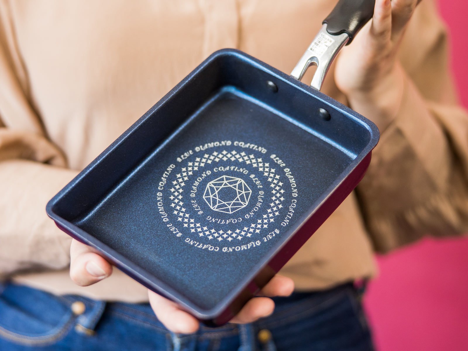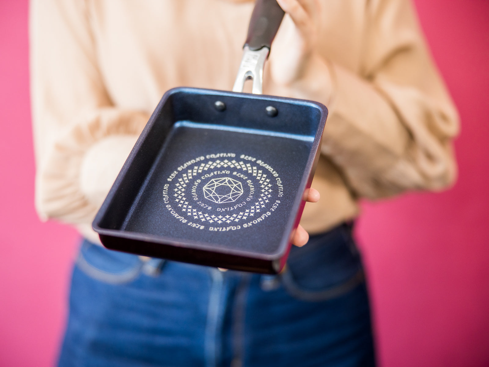The Blue Diamond Non-stick Tamagoyaki Pan 13x18cm allows you to make medium to large size tamagoyaki rolled egg easily and without much oil, thanks to its super durable non-stick coating! Simply oil the pan, pour a thin layer of egg mixture, roll it up once it sets, and repeat.