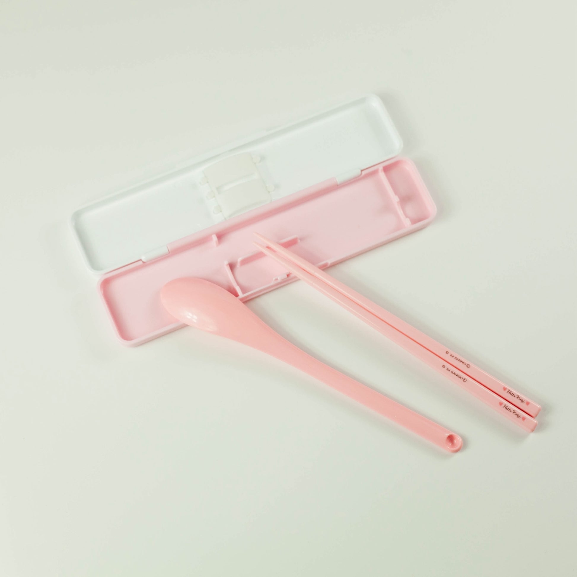 Have lunch with the adorable Hello Kitty with Water Colors Chopsticks and Spoon Set. The powder pink slim case features a little kitty cat lying down surrounded by her makeup and includes a pair of chopsticks, a spoon, and a rattle-proof matching storage case to keep everything tidy and portable.