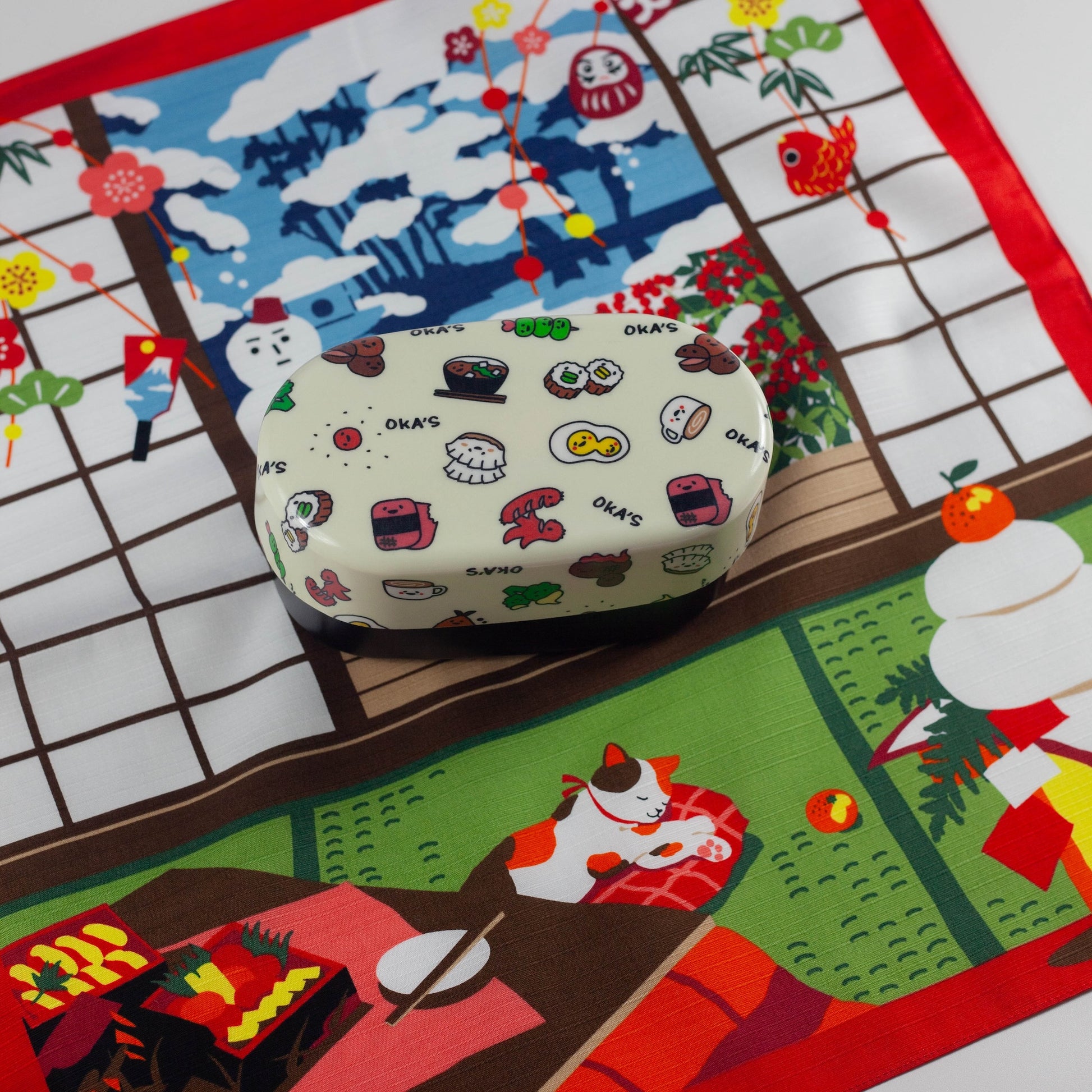 • Seasonal Design — Filled with auspicious symbols like plum blossoms and kagami mochi, evoking the New Year spirit.