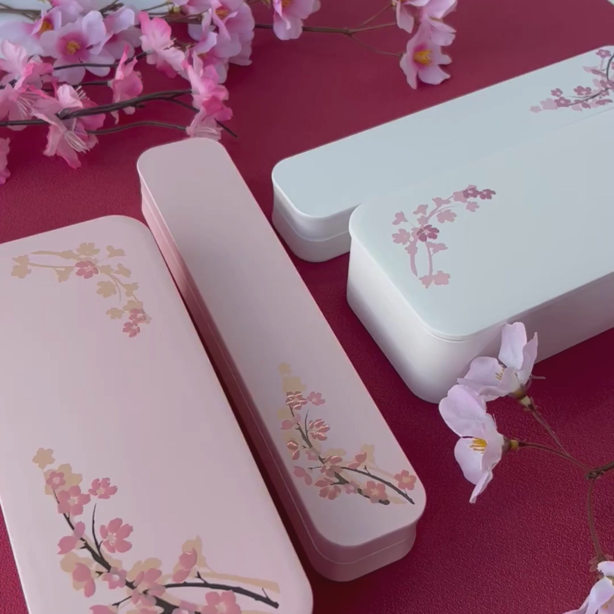 The Sakura One-tier Slim Bento Box (550mL) | White features a delicate design of sakura (cherry blossoms) in varying shades of pink. Enjoy the magic of springtime in Japan with this bento box!