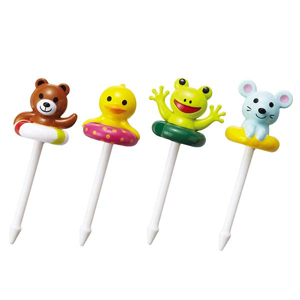 • 8 summer food picks: 2x each of: Frog, Mouse, Bear, and Duck, all playing in inner tubes.